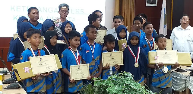 Saat membagikan sertifikat kepada atlet Klub panahan BIFZA ASC Kepala BP Batam tidak bosan-bosannya menanya kepada si atlet medali apa yang mereka raih.
